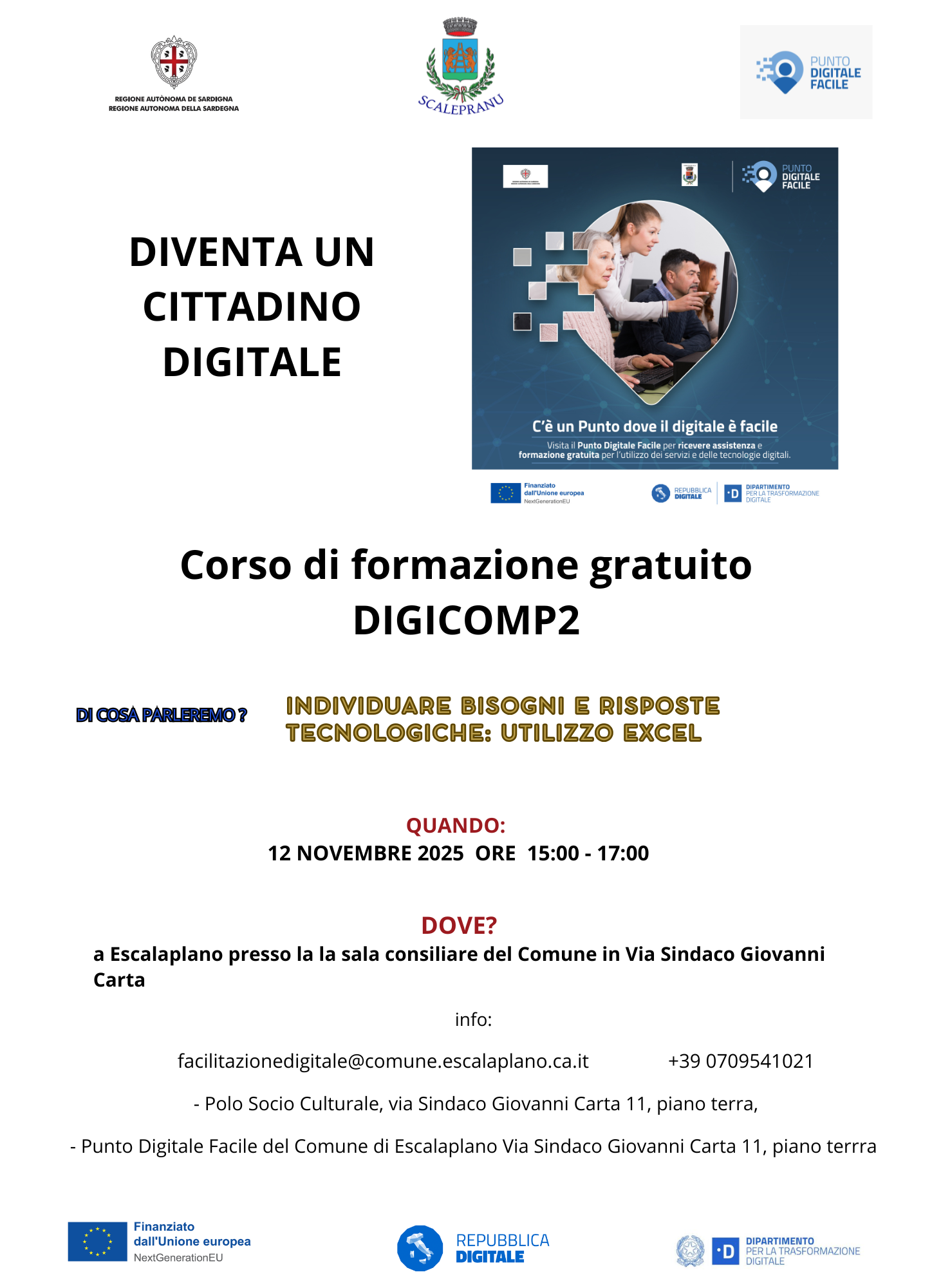 Per qualsiasi informazione inviare una email a facilitazionedigitale@comune.escalaplano.ca.it