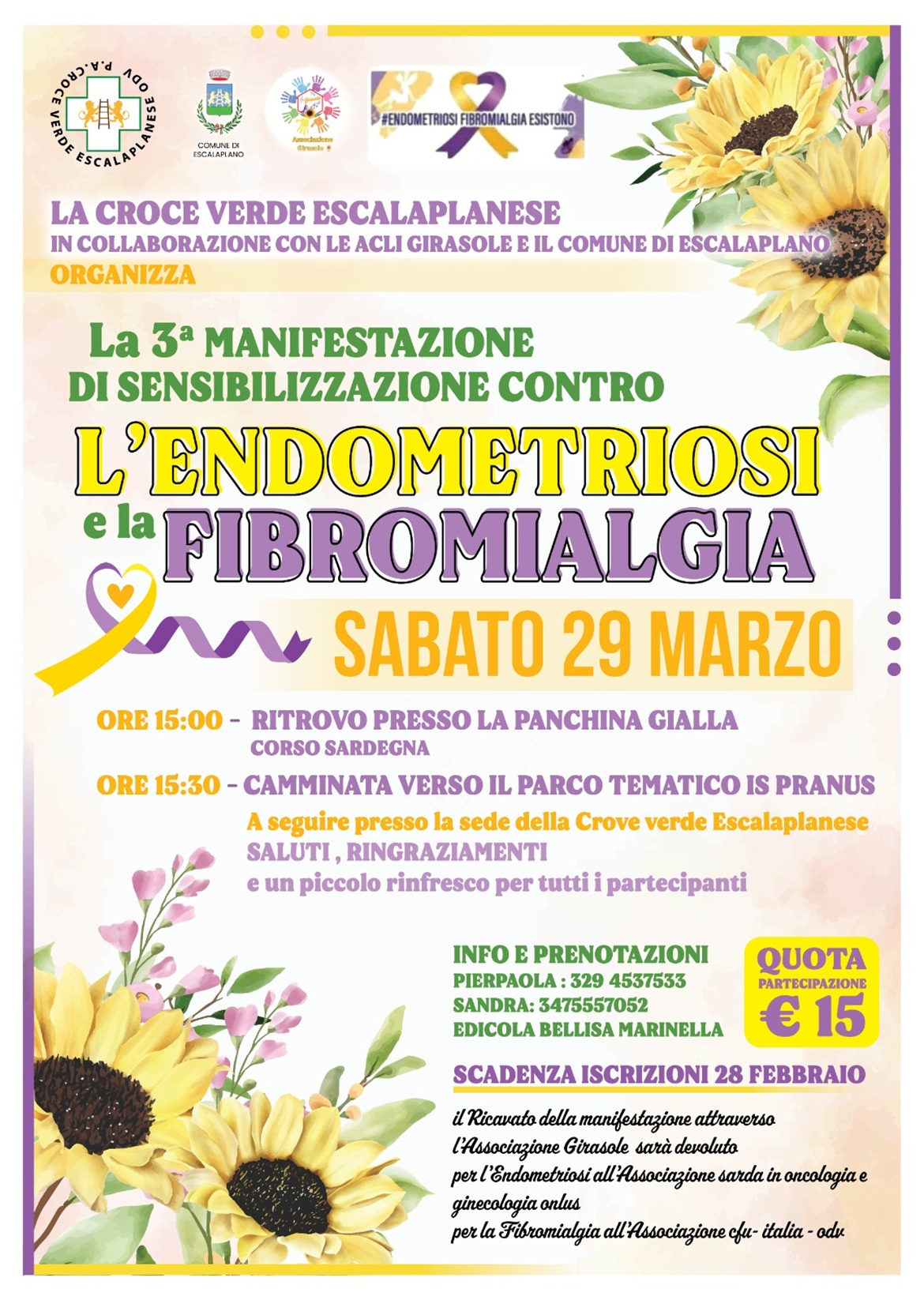 la 3° Manifestazione di sensibilizzazione contro l'Endometriosi e la Fibromialgia sabato 29 marzo 2025.
