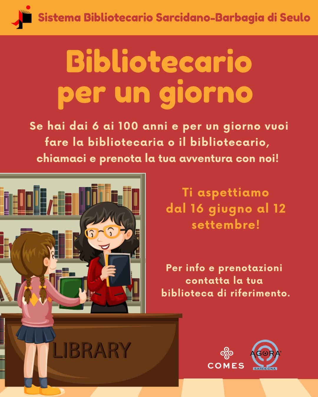 Se hai dai 6 ai 100 anni e per un giorno vuoi fare la bibliotecaria o il bibliotecario, chiama e prenota la tua avventura con la Biblioteca comunale di Escalaplano.