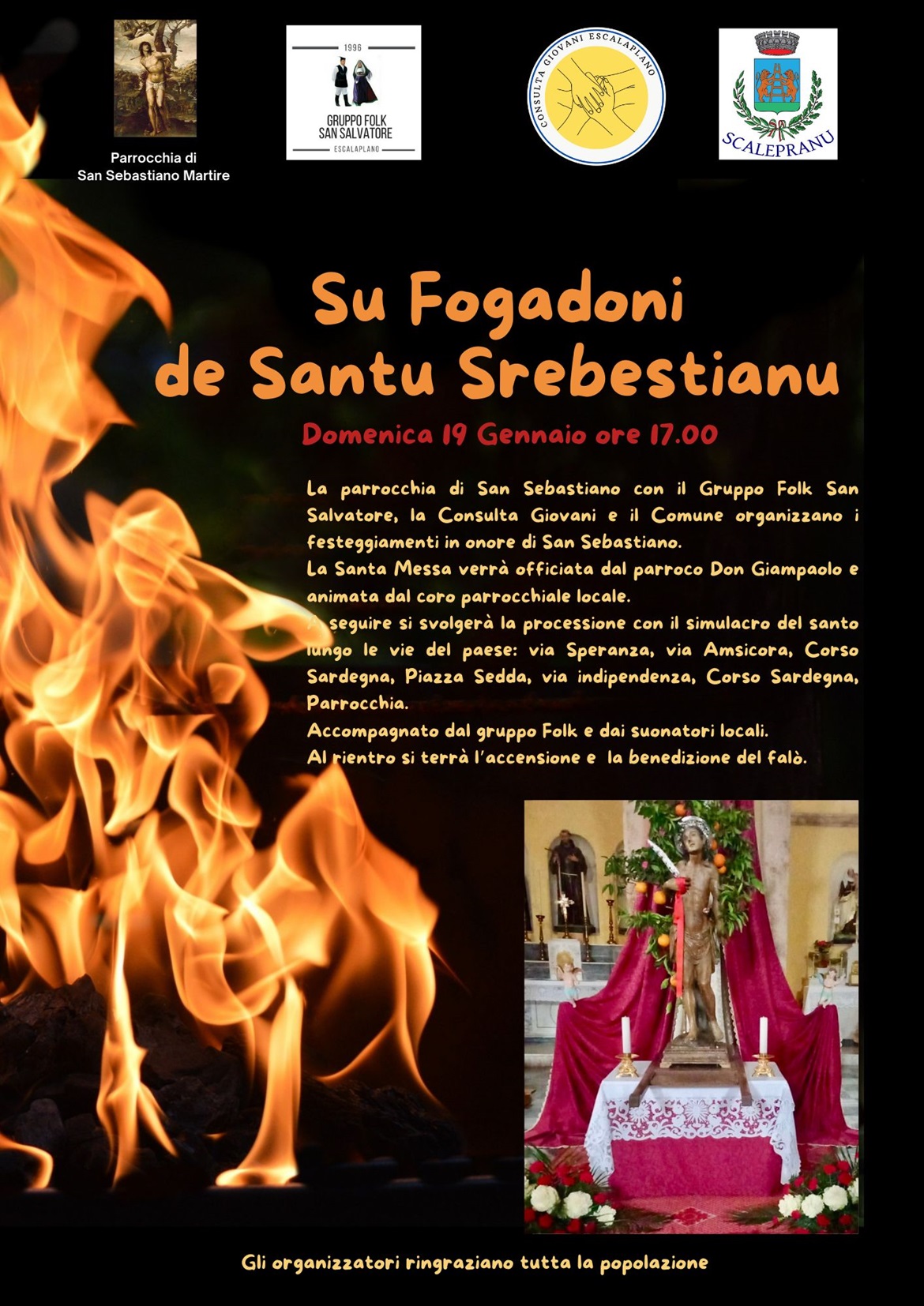 La parrocchia di San Sebastiano con il Gruppo Folk San Salvatore, la Consulta Giovani e il Comune di Escalaplano domenica 19 gennaio dalle ore 17:00 organizzano i festeggiamenti in onore di San Sebastiano.