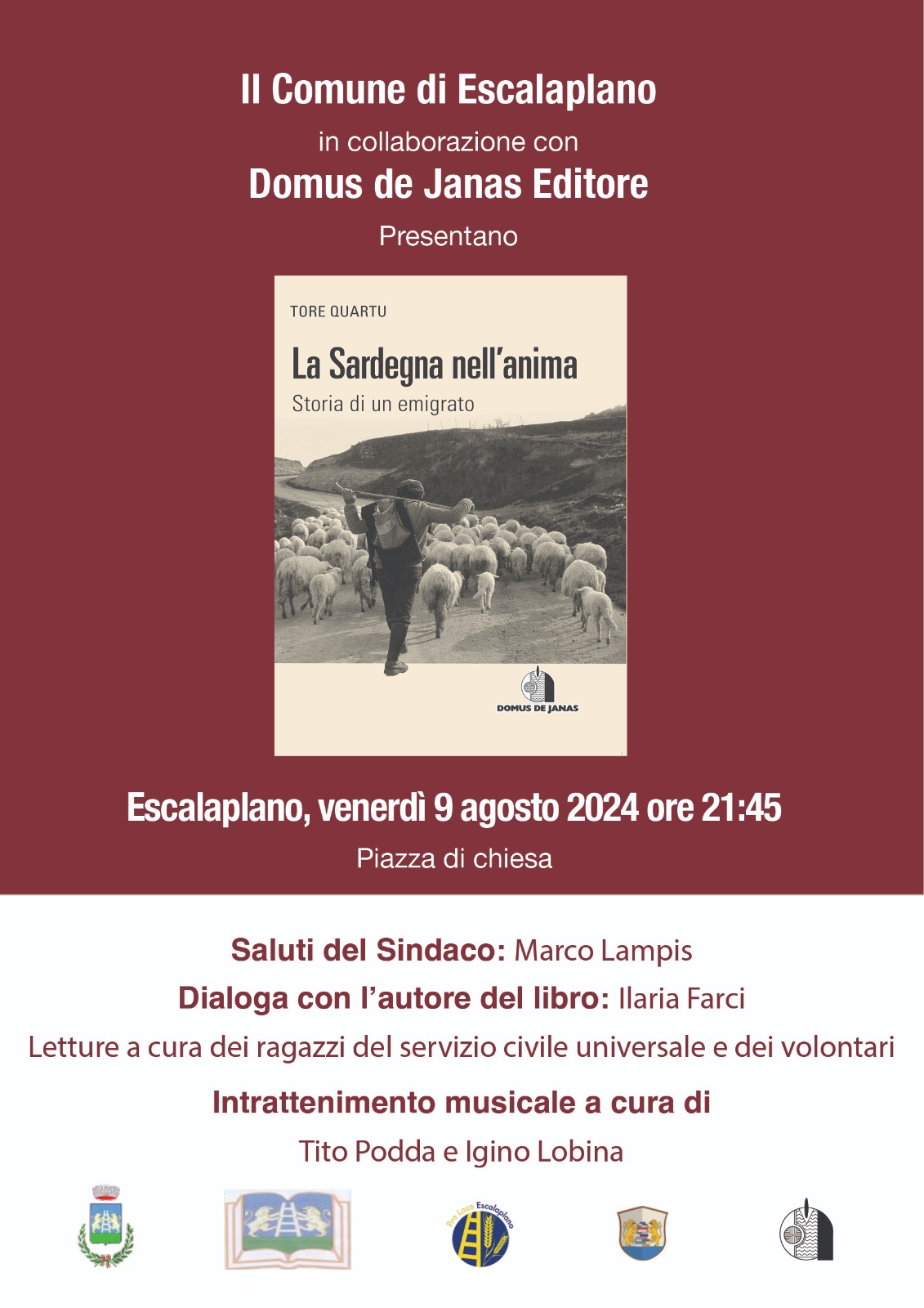 Venerdì 09 agosto 2024, alle ore 21:45, presso la Piazza di Chiesa verrà presentato il libro: