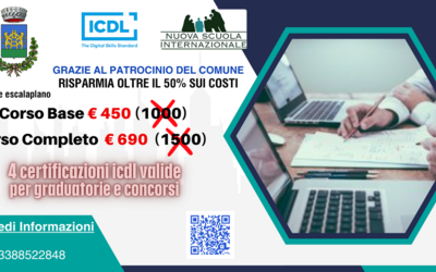 Il Comune di Escalaplano in convenzione con Nuova Scuola Internazionale dà la possibilità a tutti i cittadini residenti di aumentare la loro formazione nel campo informatico e di CERTIFICARE le competenze con attestati ICDL ormai obbligatori in graduatorie e concorsi.